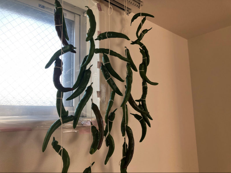 とうちゃんが水をあげすぎて、ズッキーニ、かぼちゃ、とうがらしが枯れました。かぼちゃはつるから生えた根で頑張っています。唐辛子はとりあえず干しています。