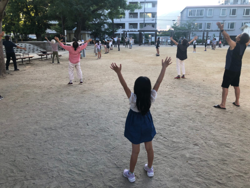 ラジオ体操に行っています。近所を探してもどこもやっていないので、保育園の先の公園まで車で行って参加。保育園のお友達も来ていました。終わったらシールを毎回貼ってもらっています。